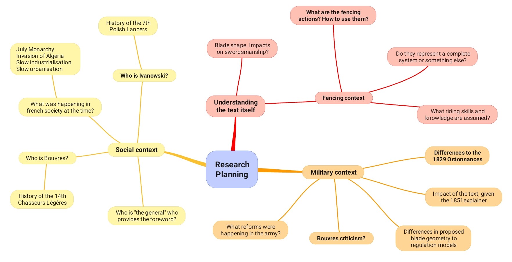 Comparison with Alexandre Muller's Theory on fencing on Horseback (1816) may also prove useful in order to give one more data point to evaluate how different Ivanowski is to the usual manner of training and fighting mounted. (Note that there is a text which calls itself “A Refutation” of Muller's ideas also published in 1816. This seems a common practice and supports a longer, semi-public discourse.)